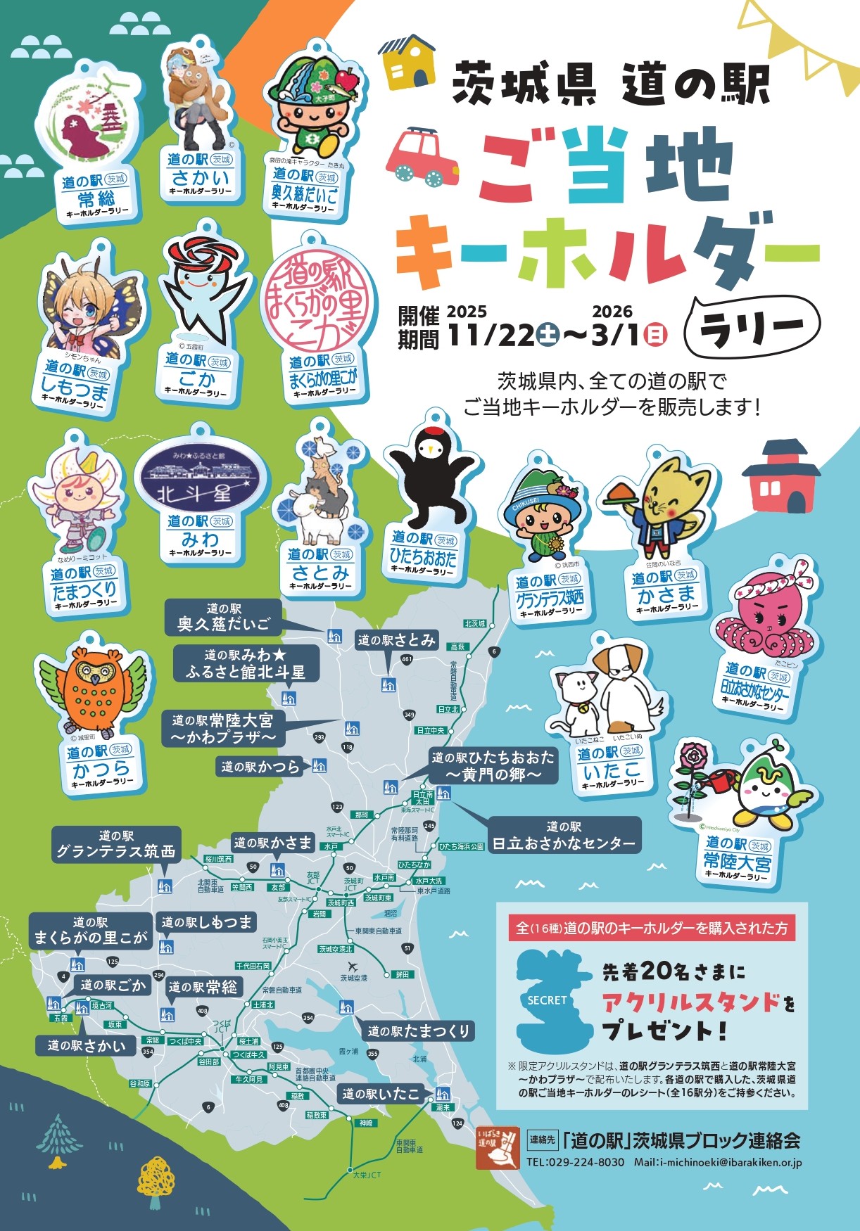 11月22日(土)~令和8年3月1日(日)まで、「茨城県道の駅ご当地キーホルダーラリー」が県内道の駅で開催されます!